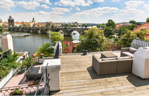 Nově zrekonstruovaný historický dům na břehu Vltavy s unikáním výhledem na Karlův most ze strany jedné a na Pražský hrad ze strany druhé nabízí 6 designových apartmánů s terasami ve velikostech 35 až 140 m2.